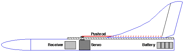 New project in progress (Dec 21, 2004): Planned twin piggyback SkyDarts carried up by a D12 (and possibly staged D12) powered BT-55 booster (SkyDarts are only along for the ride, they will not stage). The SkyDarts as rudder-only R/C, BT-50 sized. To help carry the extra weight of the radio gear, the wing area is enlarged a bit to 110%. The prototype used a small GWS 4 channel receiver, pico servo, and 50 mAh nicads (total prototype SkyDart glide weight, 69 grams). There's lighter radio gear out there, but it's what I had for a sport project like this (I might use this project to help nudge me into trying out Li-Poly battery packs, since the final SkyDart models with paint and covering will weigh more than the prototype airframe).