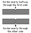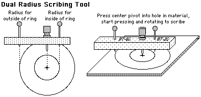 If you use a scribing tool that cuts both the inner and outer radiuses at the same time, always apply a bit more pressure to the outer radius area so that whenever the ring pops free it will be the outside, and not the inside hole. If the inside hole pops free first, you won't be able to easily use the scribing tool to cut the rest of the outer portion of the ring.