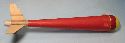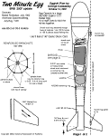 | Remaining steps: Drill two small 1/16 to 3/32" holes into the bottom of the egg capsule so you can attach a loop of strong cord securely to the capsule (I forgot to include some extra Kevlar cord for this in the kits). The REAL shock cord for the model is 1/8" elastic, about 3 feet of it. The short Kevlar cord attached to the main body is there as a good shock cord mounting system, nothing more. Tie the elastic to the kevlar to attach the main body. Tie the other end of the Elastic to the cord on the egg capsule. | |