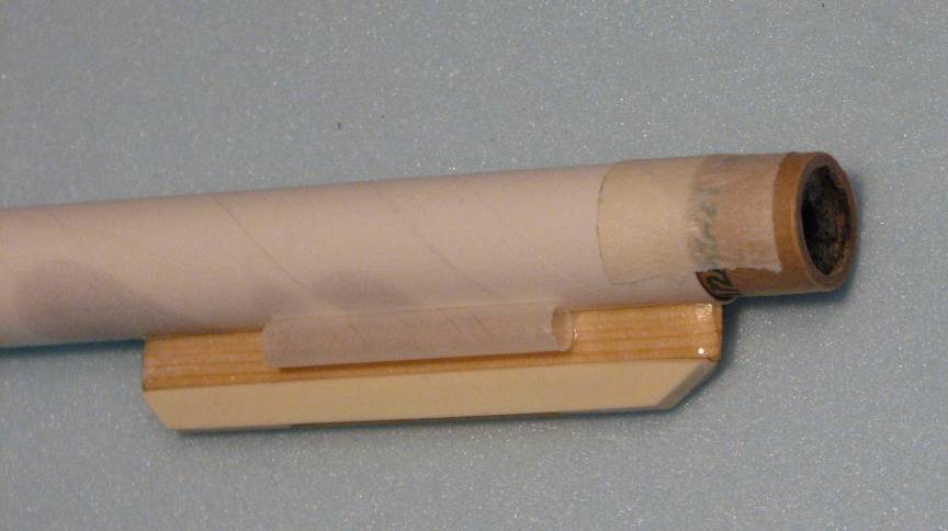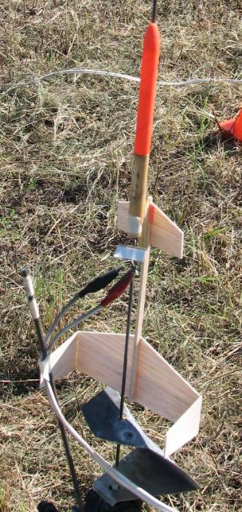 | | Use Masking Tape around part of the pod tube and the engine to hold the engine in, so it cannot kick out at ejection. | | The raw balsa color can be hard to see on the ground. So, add color from a Permanent Magic Marker. Do not use "highlighter" markers, as they do not work well with balsa wood. Do not use paint as paint adds a lot of weight. |
