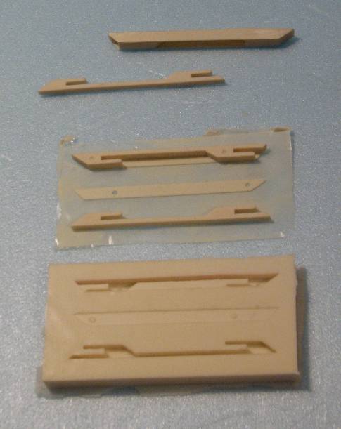 | Test flying on 1/2A power will help show you how well it is in trim. The ideal trim is a steady glide that is not too fast, is not in a stalling cycle, and has a WIDE gentle turn. Most gliders tend to turn left or right on their own. I do not recommend flying it on an A engine. It may not be strong enough for an A, and so may shred. If it survives an A, it might glide so well that it flies off or drifts so far it is hard to find after landing. | For those who are curious about it, this is how the Cast Glider Hooks are made. Complete pair at top. RTV rubber mold at bottom. Raw casting is in the middle before trimming, clean-up sanding, and gluing side plate to Pod Hook portion. | ||