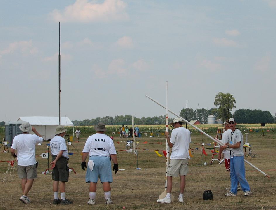 | | For some reason, one of the trackers was stationed under a tree, with a very limited range of view. Many models went untracked by this station due to the tree when the wind made them weathercock too close to this tracker. At one time, four flights in a row. The tracking baseline also was far too short for the event. | | A number of other Superrocs |