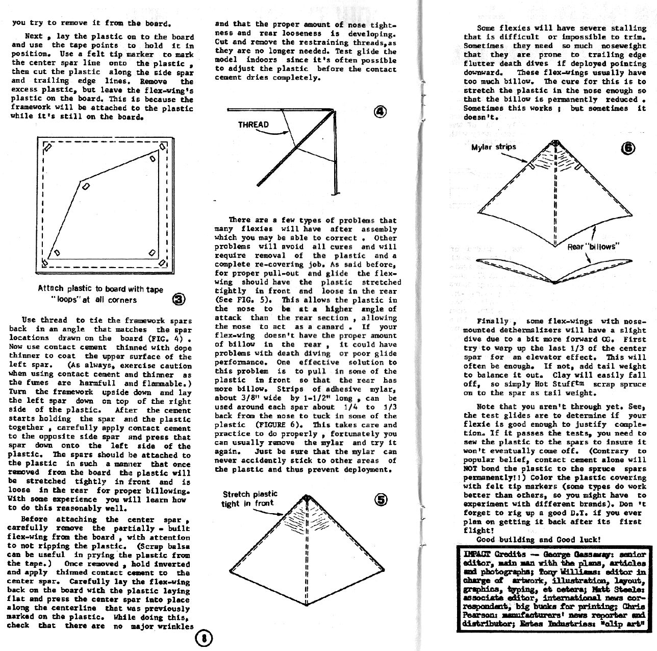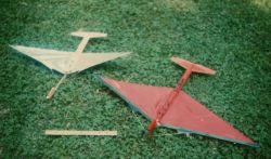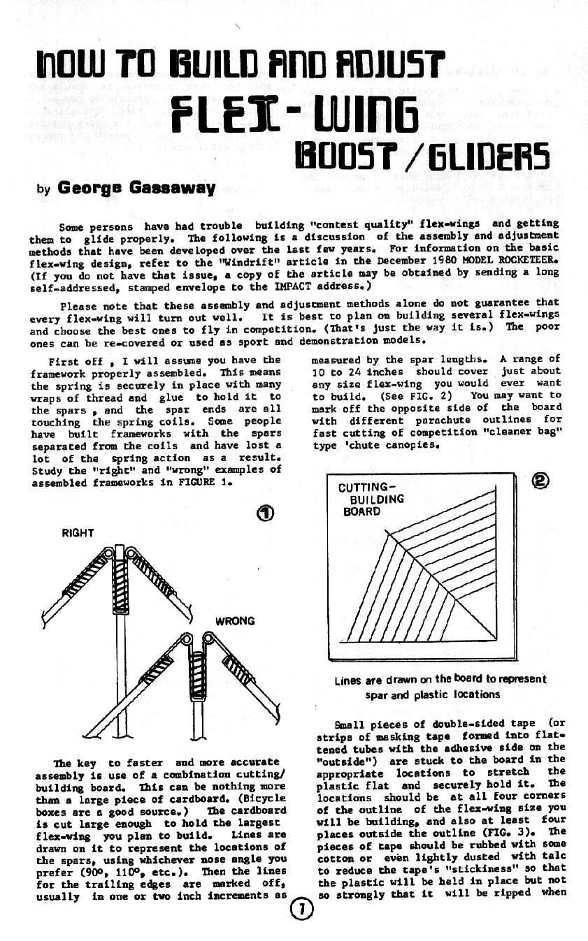 Temporary page update, June 28, 2011 At right is a group photo of several models Dave Fitch has said he's worked on for NARAMs: All-graphite G Superroc that Dave "test flew on an H", that was "built" for NARAM-49. Free Flight and R/C Boost gliders to fly in D B/G at NARAM-50, and the other NARAM-50 models Dave said he was building that never flew at NARAM-50. A super-duper scale model for NARAM-52. In order to score more theoretical vapor points for his model, Dave demanded that HIS input be heard on the Scaleroc group, and progress on a mission scoring guide come to a screeching halt. Because Dave did not attend the meeting of scale fliers and judges at NARAM-51, where the scoring outline was developed which Dave did not approve of (NARAM-51 and 52 were yet more NARAMs Dave said he was going to attend, but he did not). Of course those claimed models were no-shows (and almost surely never-existeds). And pretty much so is Dave almost EVERY year he claims he's going to attend a NARAM (He's claimed almost every year since 2003 that he was going to attend NARAM, he only showed up for NARAM-50 and only flew 1 or 2 events, while the other models he bragged 2 months before to be working on, were curiously absent). I know of nobody on Contestroc who believes Dave ever actually built that G Superroc he claimed he'd built. He had been asked several times by multiple people to produce a photo of it, but he never did. Even though he's a photographer. Some people just do things, and let their work talk for themselves. Others just TALK (and type, and type and type and type) but don't walk the walk. And some also don't pay their bets when they lose, even when the cost would not be one cent, they just choose not to live up to their agreements (If Dave lived up to a bet we made, which he lost and reneged on, then he'd only post ONCE a day on Contestroc). Why post this here? Dave often asks and asks and asks about stuff but he doesn't follow up with any of it. He's not a newbie, he's been in this hobby since the 1970's and has been on Contestroc since 2003. So, he's not going to build a flex-wing with a DT. And yet again despite claims last fall, he's not going to NARAM (surprise!), so he doesn't have any remaining excuse to claim he's going to build any flex-wings, either. If Dave is unhappy with this, he can feel free to post his response on his own rocketry website that he put together, showing his articles, plans, and photos. And now we continue with the actual purpose of this page, Flex-wings: