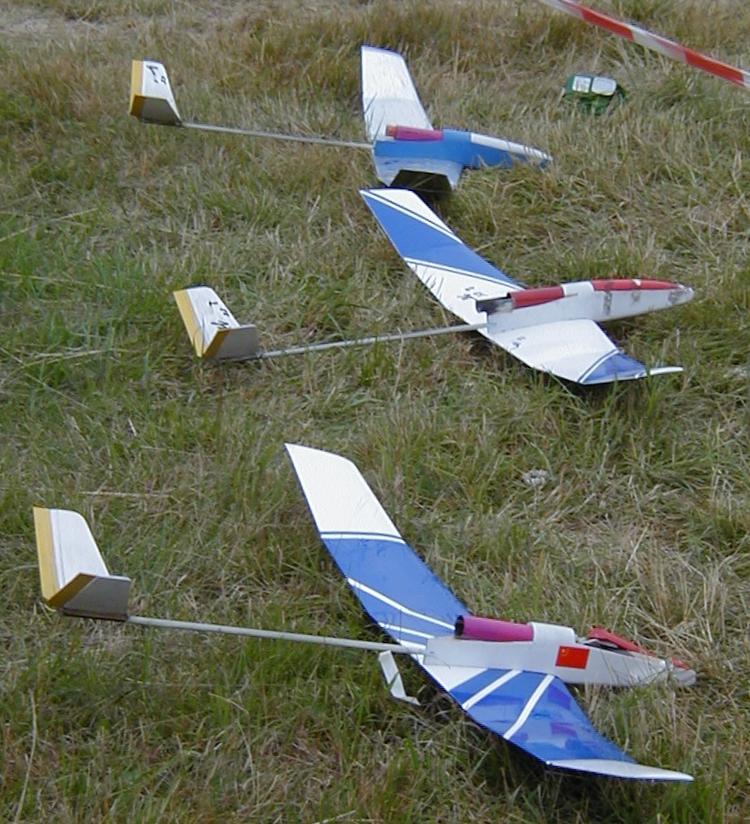 ![]() Chinese Junior S8D Team at 2000 WSMC with upright V-tails | ![]() George's S8E-P Cuda-Flap (2001) with Video Camera Pod (2005) | ![]() Chad Ring's Cuda Light shredded on a test boost, was rebuilt, and went on to win big in C Division D B/G at NARAM-50 |