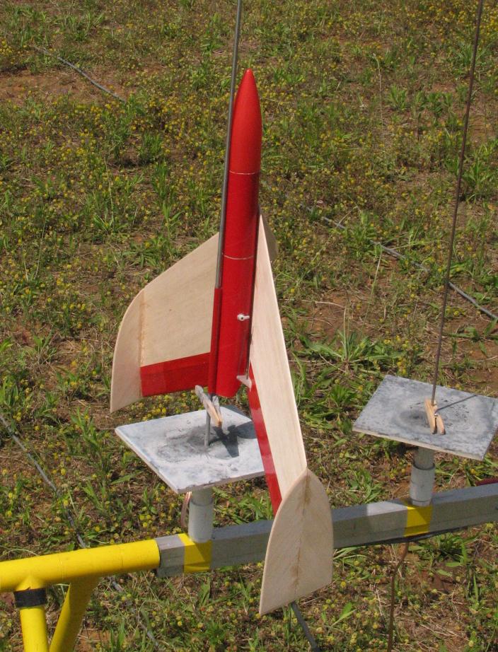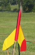 For the launch rod, simply a spare .505" diameter fiberglass tube as used for tower rails. For a launch lug, BT-5 was too tight of a fit, so a piece of 14mm tubing was used. The 14mm tubing was a bit wimpy, so it was given a few wraps of 3/4 oz. fiberglass cloth and saturated with some laminating epoxy to make it plenty sturdy.