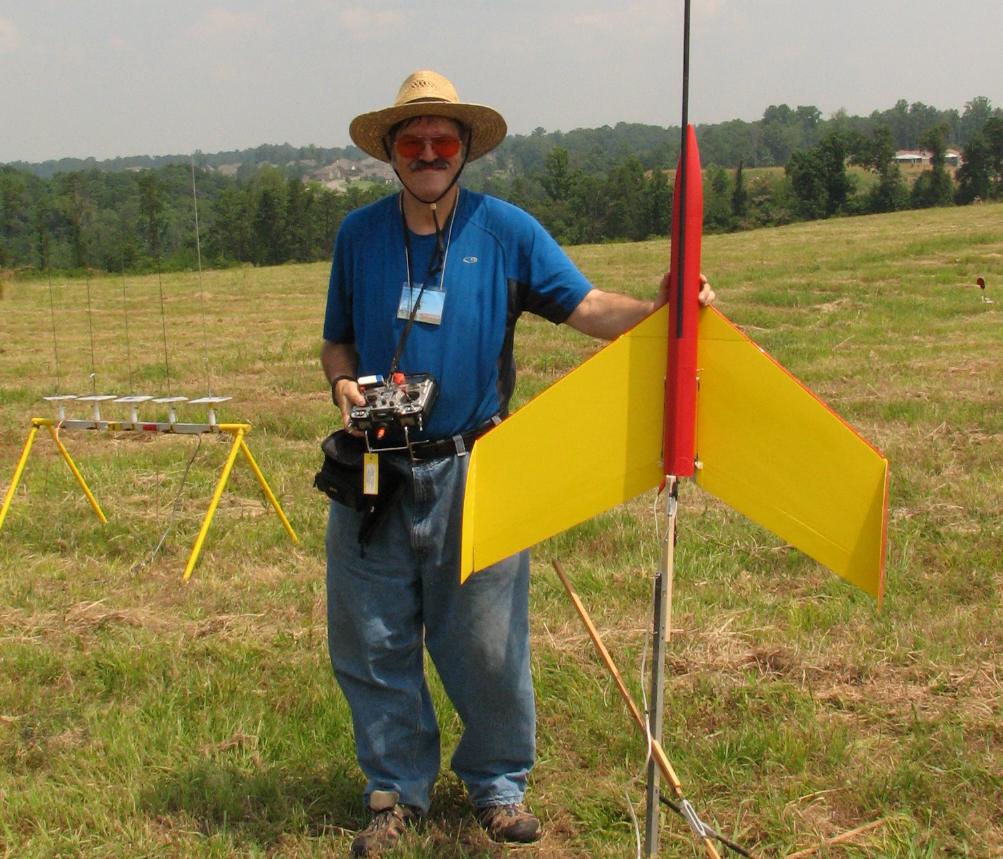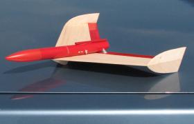 The model was ready for the June BRB launch. Since it was pretty large and sort of heavy, I figured it out not be twitchy on boost, so I did not try to roll it. It took off and just boosted almost like it was on rails. Zero roll, and just a hair of a pitch-down. Was so easy to correct the boost for. That first flight was on an F13, in case the boost was poor it would burn out in 3.5 seconds rather than last for 8 seconds on a G12. But that first test went so well, I flew it several more times that day. The glide handling was even better than for the 2X model. It reminded me of the Zagi Flying Wing that I had converted to Rocket Power, not quite as good of glide but the R/C handling was so good (the dihedral plus leading edge sweepback helps make the roll response very forgiving). Then I put it away to ship to NARAM-50.
