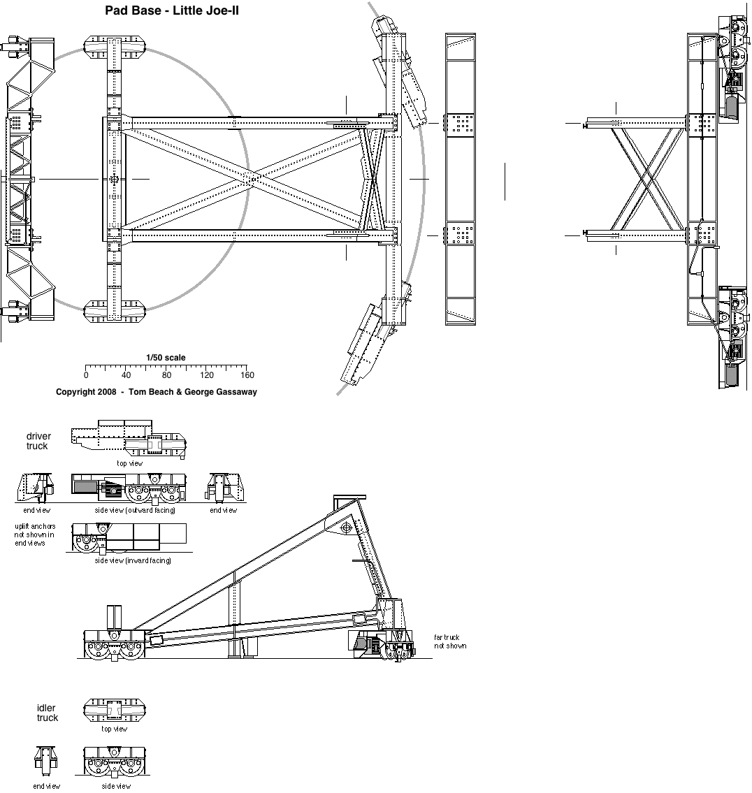 | by George Gassaway & Tom Beach The following Little Joe-II Drawings were mostly done by George. Some portions were done by Tom. The Pad Drawings were entirely Tom's. Most of these drawings were in the May/June and July/August 1991 issues of American Spacemodeling Magazine (The NAR's magazine name before Sport Rocketry). | Navigation links for this page: |