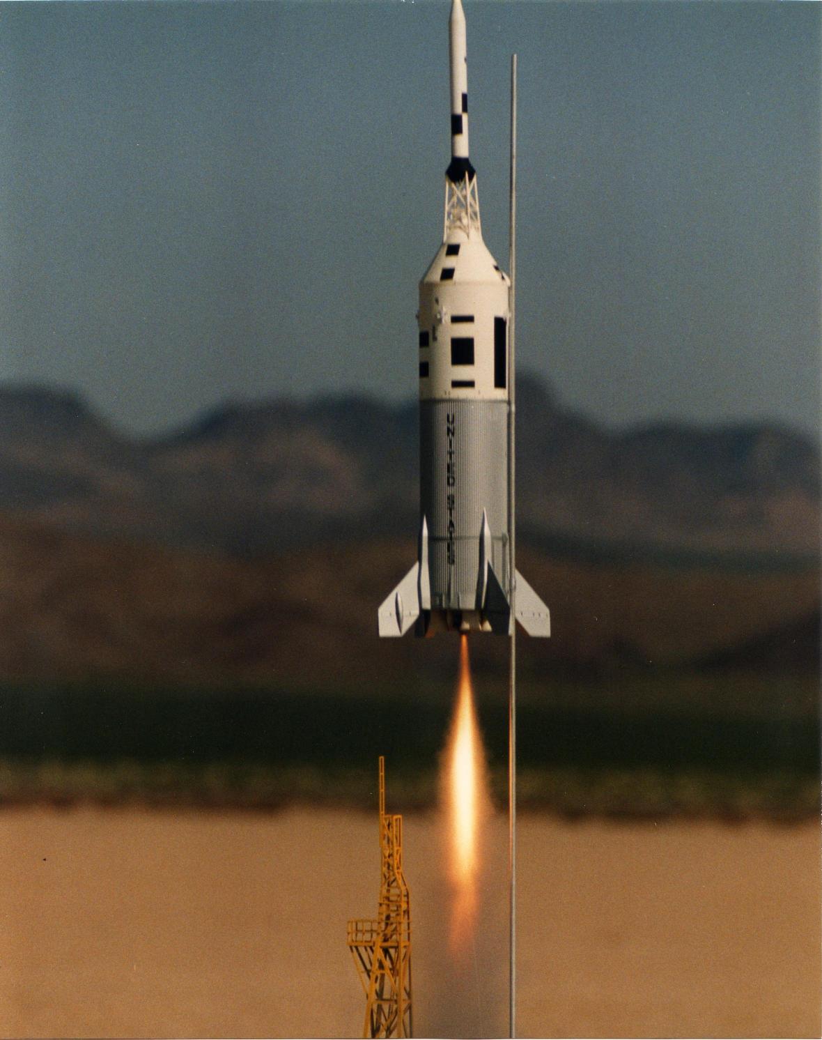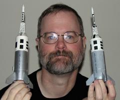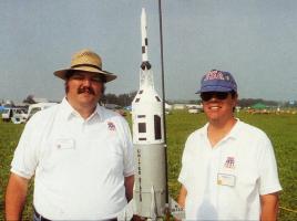 A-001 , QTV, & QTV SM  A-004, A-003, A-002  QTV Fin Attachment  1/39.5 drawing of A-004 (3' x 4')  A-003 without lower BPC S-65-19755 | The Little Joe-II pages in this portion of the website have been created to both help to document the Little Joe-II, and models of them. For models, mainly the ones that Tom Beach and I have built, and for the Model Rocket Kits which have been available through the years. Individually, Tom and I both became aware of the Little Joe-II due to the kits available in the 1970's. Most notably the "Historical Brochure" which Centuri had in their 1/100 and 1/45 kits. The Little Joe-II was a neat looking rocket. And, one could buy and fly an "Apollo Rocket" a lot easier (easy for the Centuri kits at least) and cheaper than buying a Saturn-IB or Saturn-V kit. Around 1978, Tom started collecting information and photos on the Little Joe-II. In 1989, thanks to Wayne Hendrick's interest, I started looking into building a serious scale model, and contacted Tom Beach who was known to be the person in model rocketry to know the most about the Joe-II. This eventually led to the creation of drawings to document all five of the Little Joe-II's that had flown. Those drawings, plus photos, and a special article written by Tom, were featured in the May/June and July/August 1991 issued of the NAR's American Spacemodeling Magazine (Now Sport Rocketry, which Tom is the editor for). Tom built a 1/100 model which won at NARAM-29 and took 3rd at NARAM-28. I built one at 1/39.5 scale that won NARAM several times, once with a scale pad. And a few other models, including one at 1/100 and one for pure fun at 1/22 (7" diameter). When we created the data for American Spacemodeling we had thought there were going to be a couple of hundred extra copies or so run off on purpose, so that NARTS would have back-issues to sell as ready-made Little-Joe-II data-packs to people in future years. Unfortunately, that did not happen, and there were even less leftovers from the print runs than normal. So, for a long time I have wanted to put up some pages to make up for the lack of back-issues of that data. Finally that has happened, with these pages. All of the drawings are here, plus some extras, including Launch Pad drawings Tom drew up. Also, all of the photos that Tom collected and scanned. As well, a second page of other photos. There are also a lot of the original NASA reports on the Little Joe-II's, which are now available from the NASA Technical Server. So I have included a page listing the on-line PDF files I found, plus some samples from them and links to download them for yourself. I have created a page for Tom's Models and a page for my models, including some construction notes and photos. And, last but not least, a page listing all of the Little Joe-II Model Rocket Kits that have been produced. I hope you enjoy them. George Gassaway - December, 2008 Please see the links below, for this site and for other pages on the web. |  Tom with 12-51-4 in New Mexico  George (far right) at JSC in 1979 Ric Gaff photo  Tom Beach at NARAM-28 (1986)  George's model at NARAM-34 (1992) Tom Beach photo |