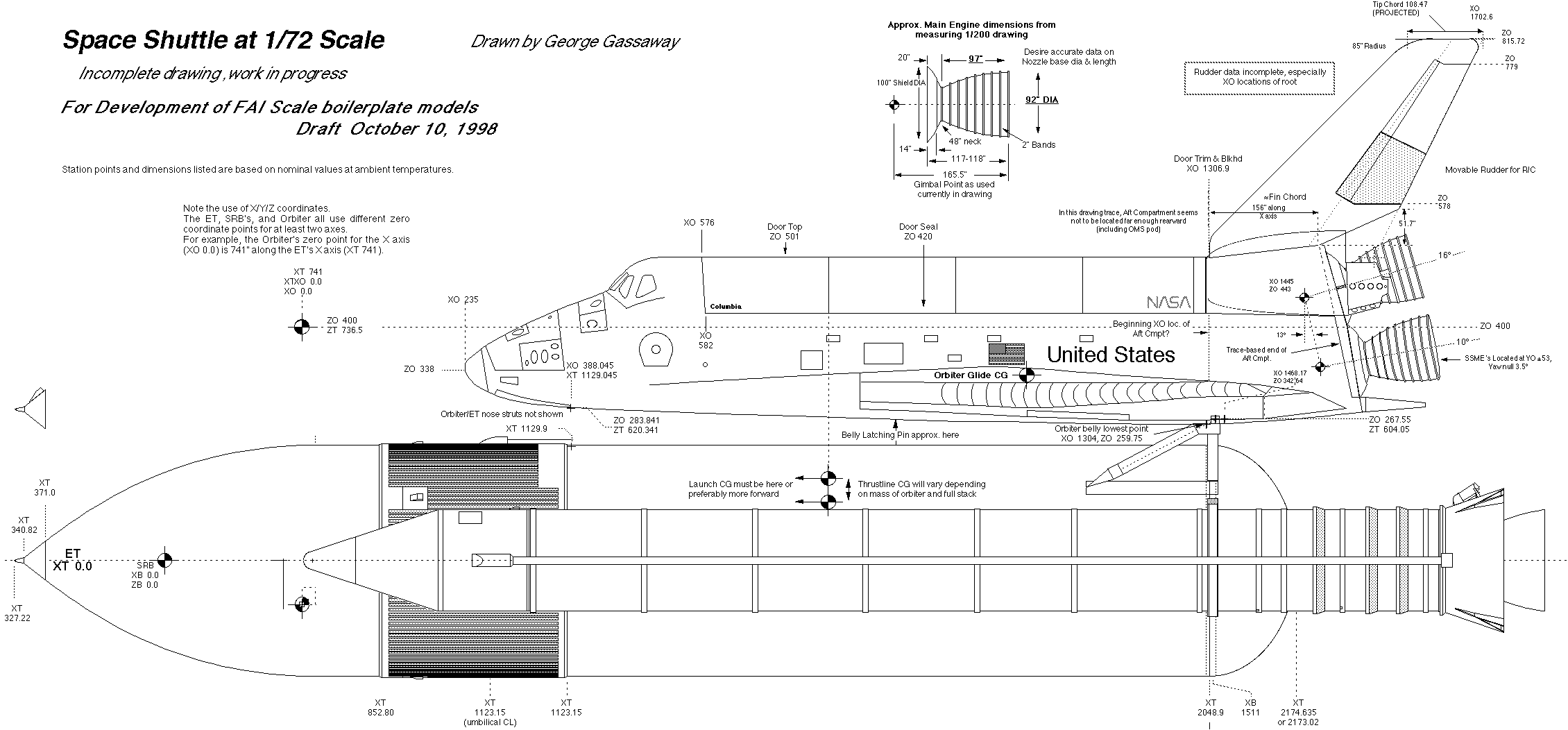 FAI Shuttle model Workshop Drawing at 1/72 Scale