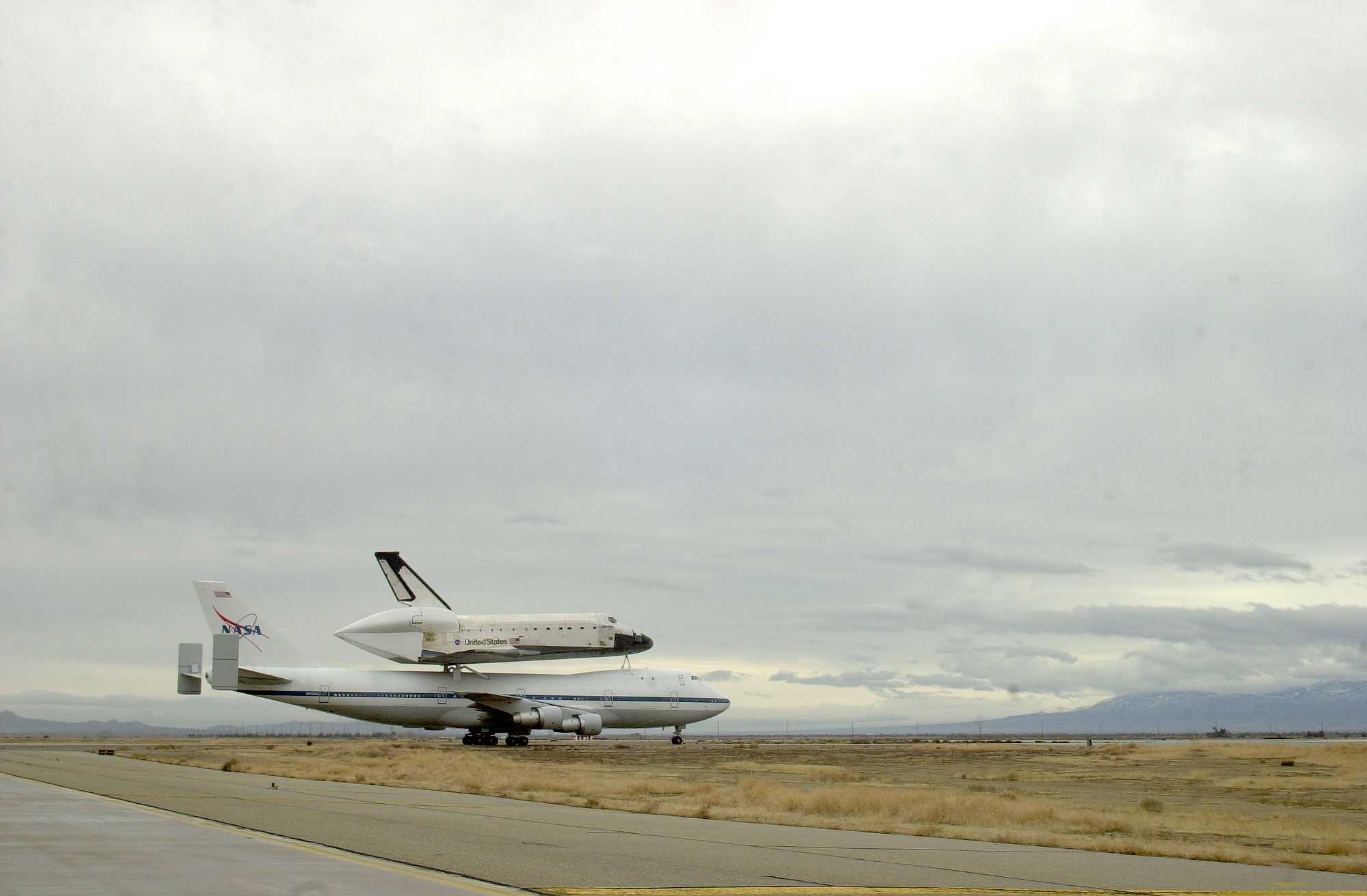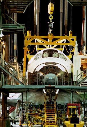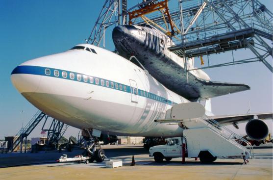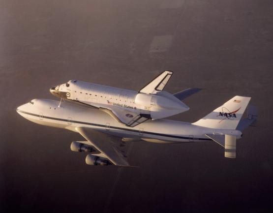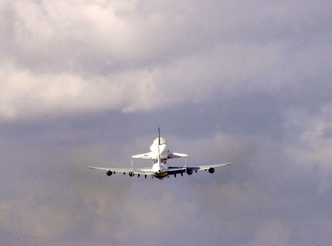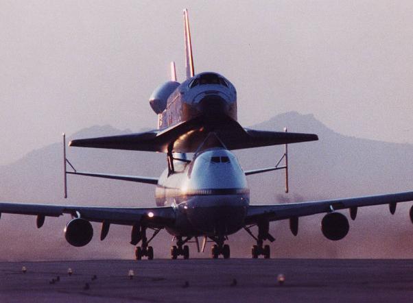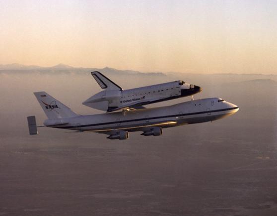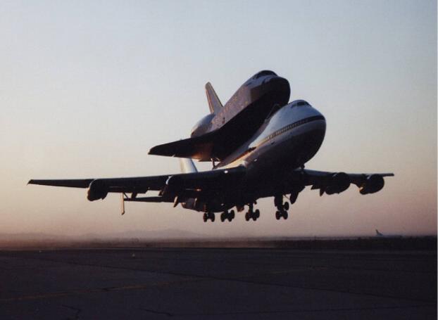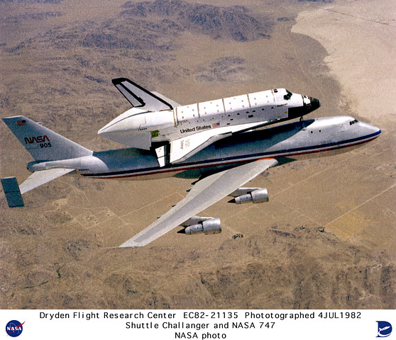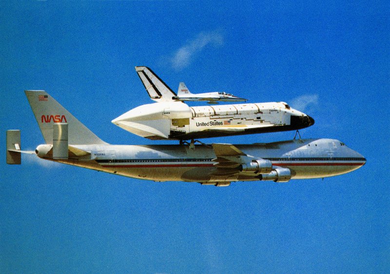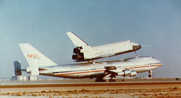 | | Moment of sep, without tailcone | Columbia was flown to KSC with some tiles not yet in place. Some other tiles simply fell off during the ferry flight. | ||