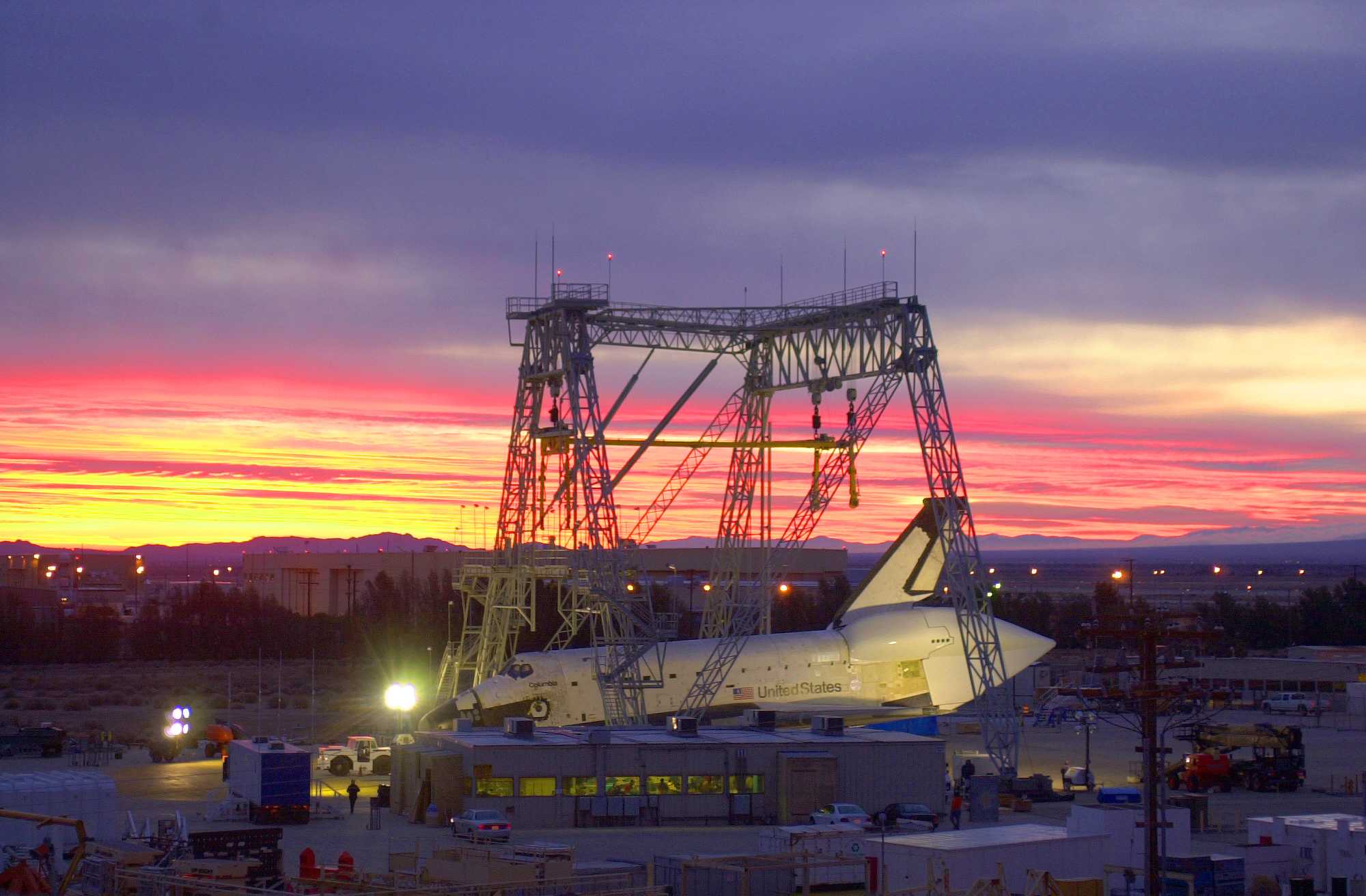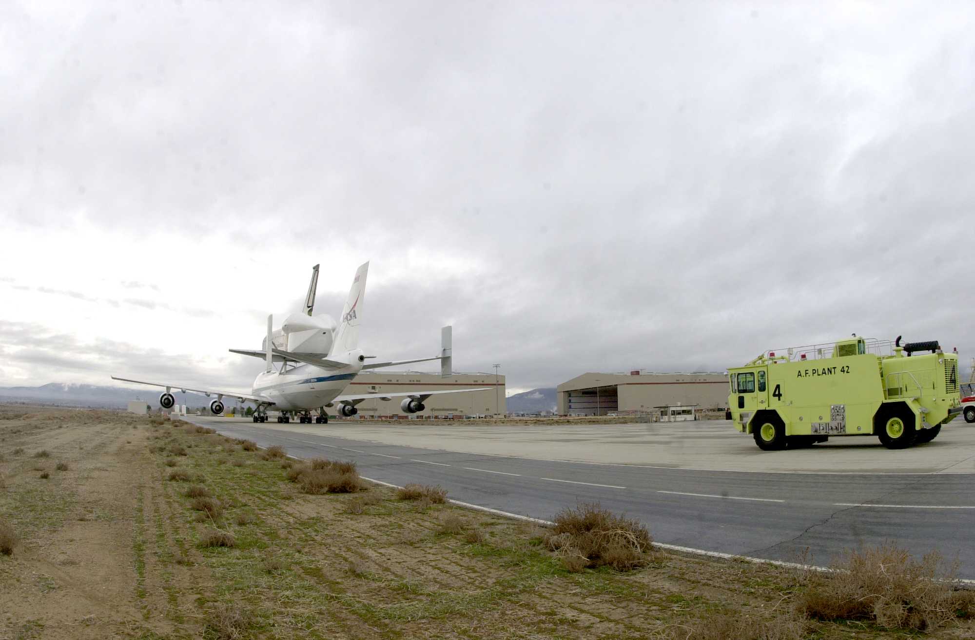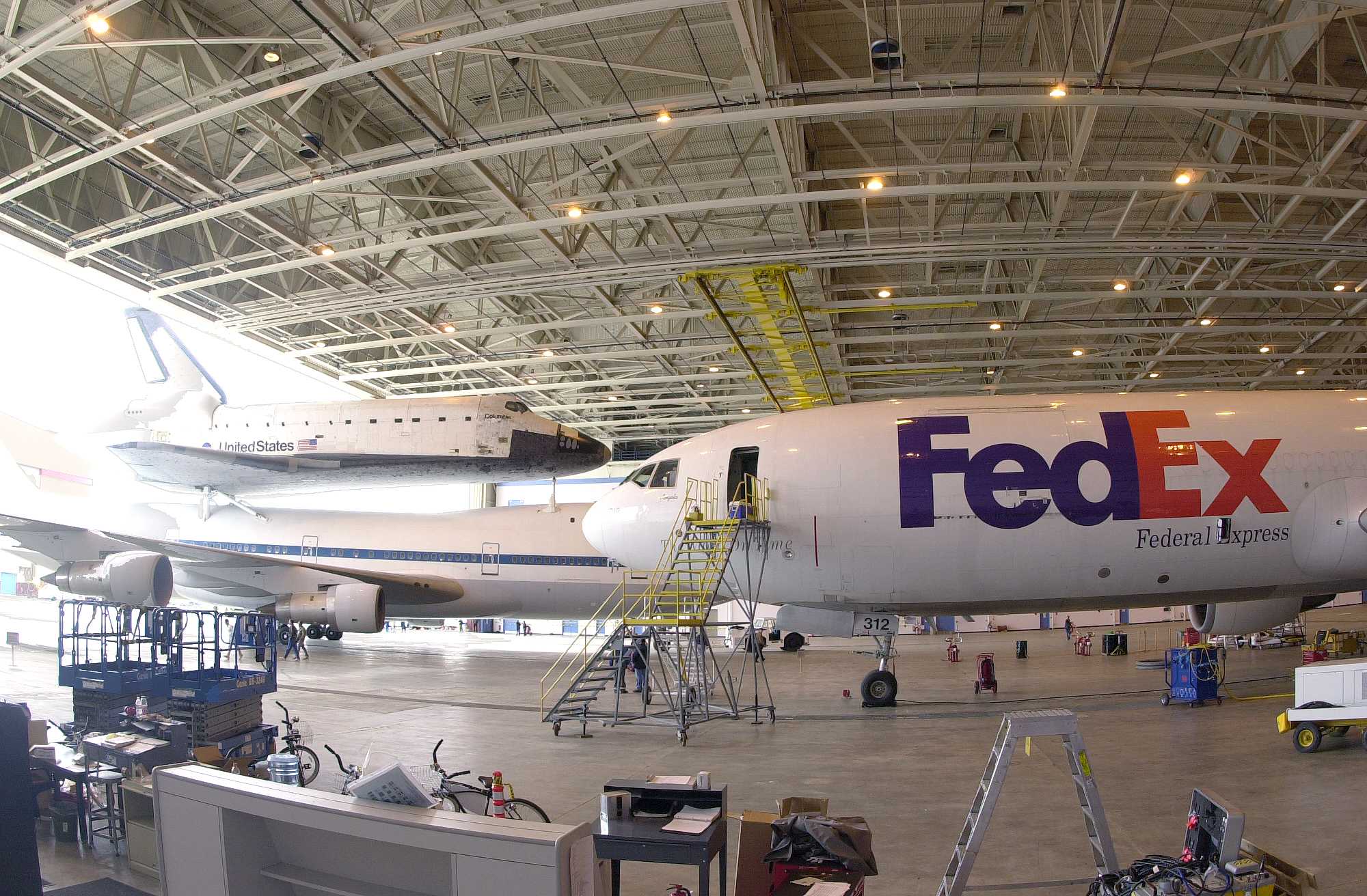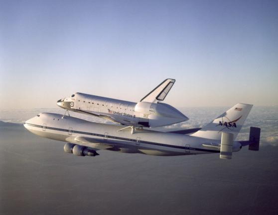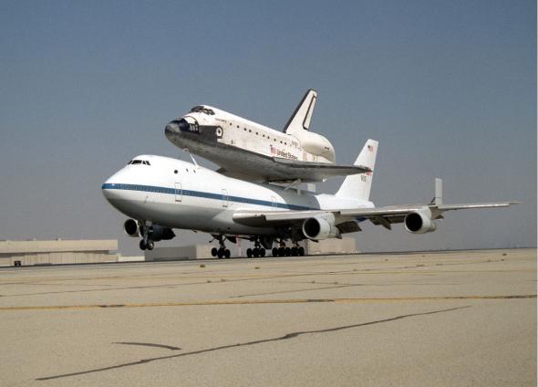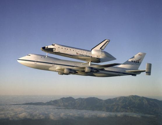 | | Moment of sep, without tailcone | Columbia was flown to KSC with some tiles not yet in place. Some other tiles simply fell off during the ferry flight. | ||