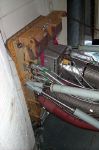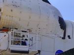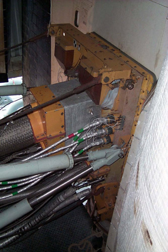 | Aft Compartment of orbiters have T-0 umbilical connections on the sides. These carry Liquid Hydrogen and Liquid Oxygen to load the ET, as well as various other connections from the pad to the shuttle. They stay connected until liftoff, thus the "T-0" name. | | | | aft_fuselage_2-small.gif |