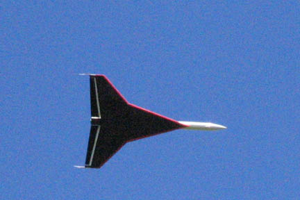 | Flight at the April 16th, 2005 Birmingham Rocket Boys Launch, at the Phoenix Turf Sod Farm. The SkyDart 2X made one solo flight, using an Estes E9-P engine.