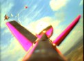 | Flight #4 - Flew on an E6 reload. It boosted nicely, and the video stayed good throughout the boost. Made a bit of a roll correction during the boost, then decided before burnout just to roll it the rest of the way, which turned into a barrel roll transition into glide. During glide, did some loops and barrel rolls. Unfortunately, the camera pod didn't rotate to look forward, the rubber band got hung onto a little piece of plywood near the retracting pin on the fuselage. Due to the steady headwind, I made a long landing approach that looked like the model glided a lot slower than it really does. Tried to catch it, but it ballooned up at the last moment. That would have looked so nice if the camera was facing forward, but having read this keep that in mind as you see the landing sequence in the video.