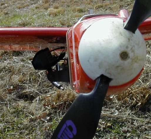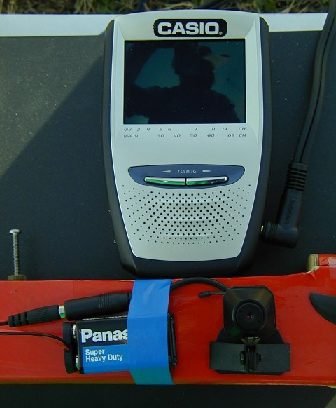 Camera attached to fuselage, looking out the right side. Camera, receiver, and TV set-up running at the time this pic was taken.